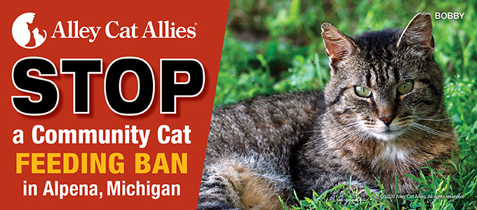 Please join Alley Cat Allies to fight for the community cats of the Alpena. Tell the City of Alpena to reject the feeding ban against community cats.